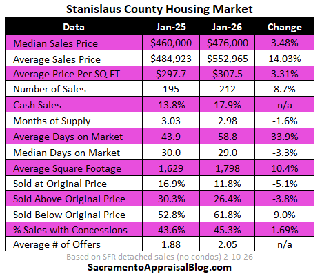 Check out the 10% size difference this year in Stanislaus. Can that make a difference in the price stats when larger and more expensive homes sell? Yes, it can. This is why I include square footage on my visuals.