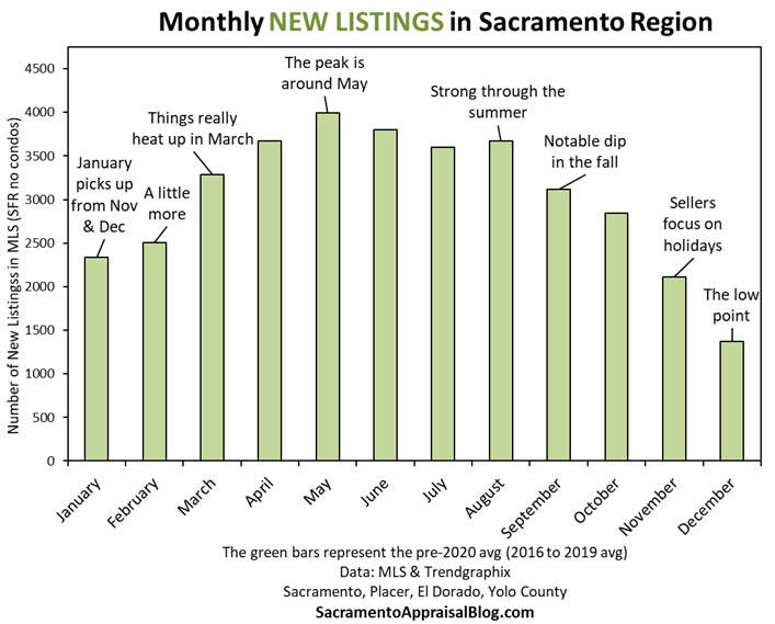 The housing market will hit more of its stride in March, but we are seeing signs of waking up already (as expected). Between February and March, we typically see a 31% increase in the number of new listings in the Sacramento region. This makes sense, right? The weather improves, summer is getting closer, and plans start to unfold more for the year.