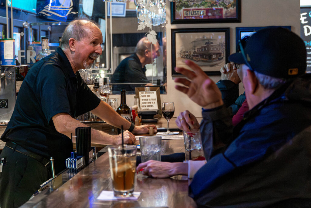 Paco Canto laughs with customers at Freeport Bar & Grill. (Tyler Bastine)