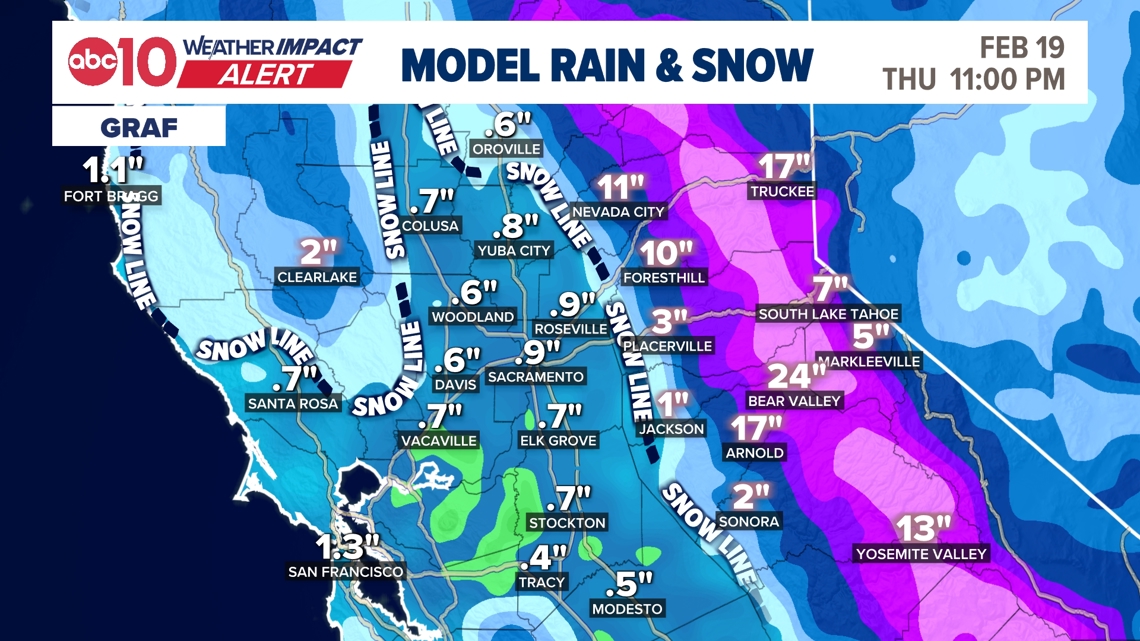 Heavy valley rain and heavy Sierra snow for most of Thursday before the system finally starts to wind down by that evening