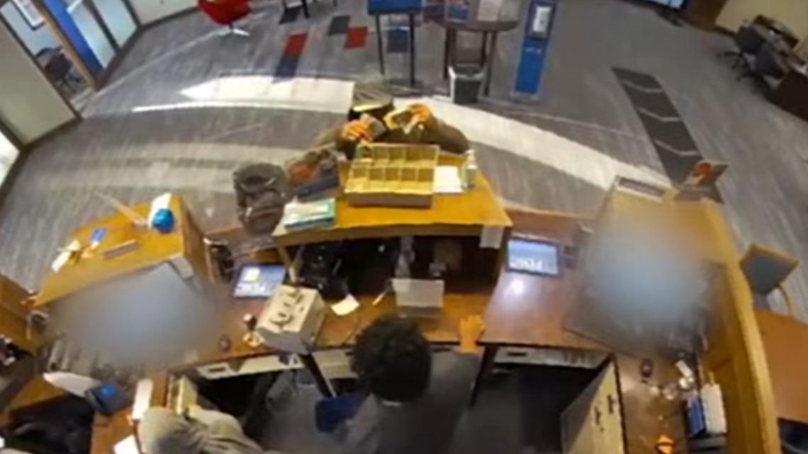 In an audio recording, the initial 911 caller identified themself as a bank employee. They said they were on break when the crime occurred, but saw a teller hand the till to a suspect.
