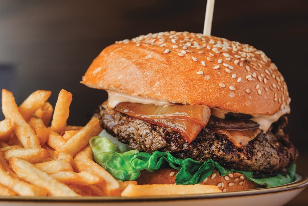 The flame-broiled burger with a half-pound beef patty, grilled onions, sharp cheddar cheese, Bibb lettuce and special sauce (Photo by Zach Clevenger, courtesy of Urban Roots)