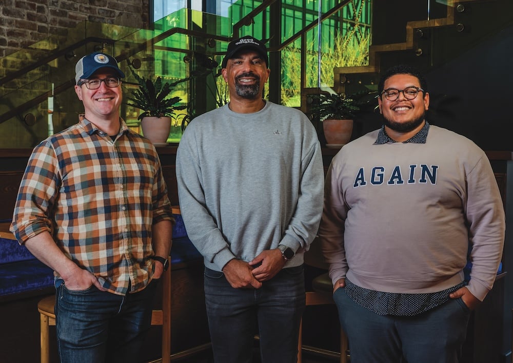 From left: Good Neighbor owners Peter Hoey and Rob Archie with Urban Roots culinary director Greg Desmangles (Photo by Zach Clevenger, courtesy of Urban Roots)
