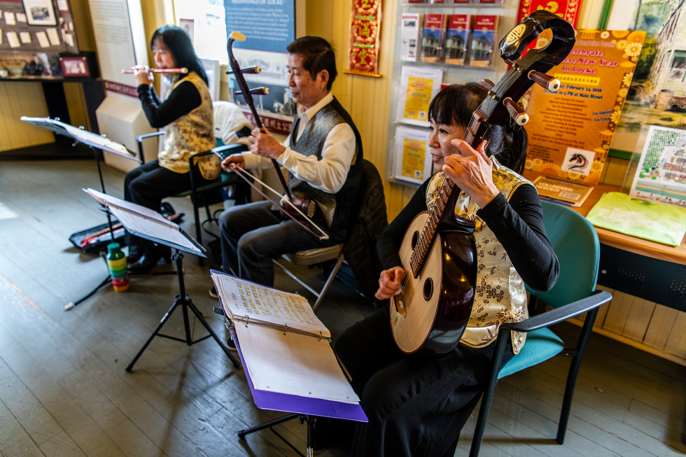 Louisa Yu, Jickmon Wong and Marilyn Wong performing as the