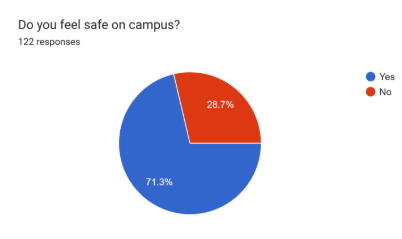 In a voluntary response survey they conducted across the campus, 122 people responded. Concerning the topic of ICE, they asked students if they felt safe on campus, to which 71.3% of people responded yes while 28.7% responded no.