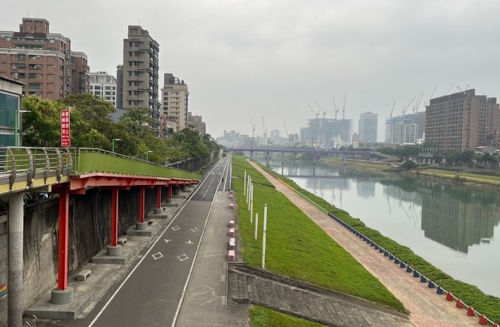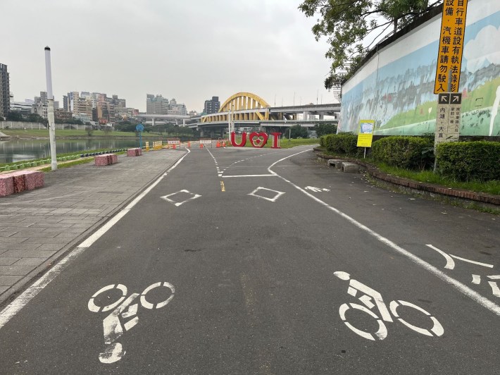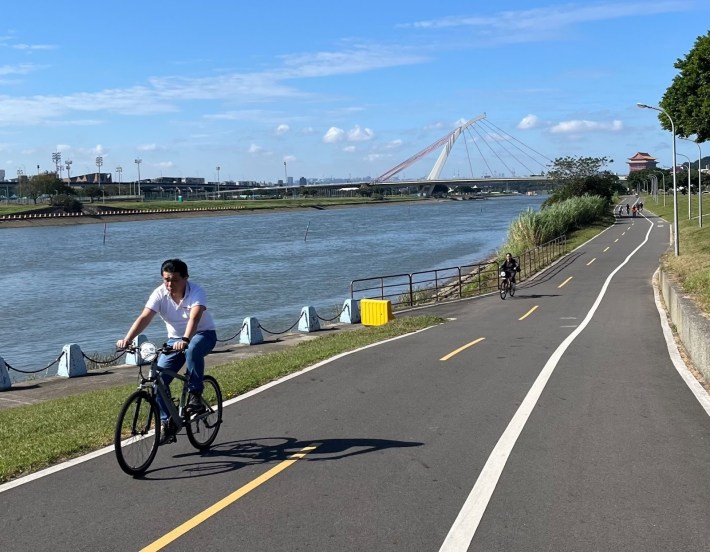 A beautiful bike path in the heart of Taipei — and look at all those construction cranes in the distance putting up new housing along the Keelung River.