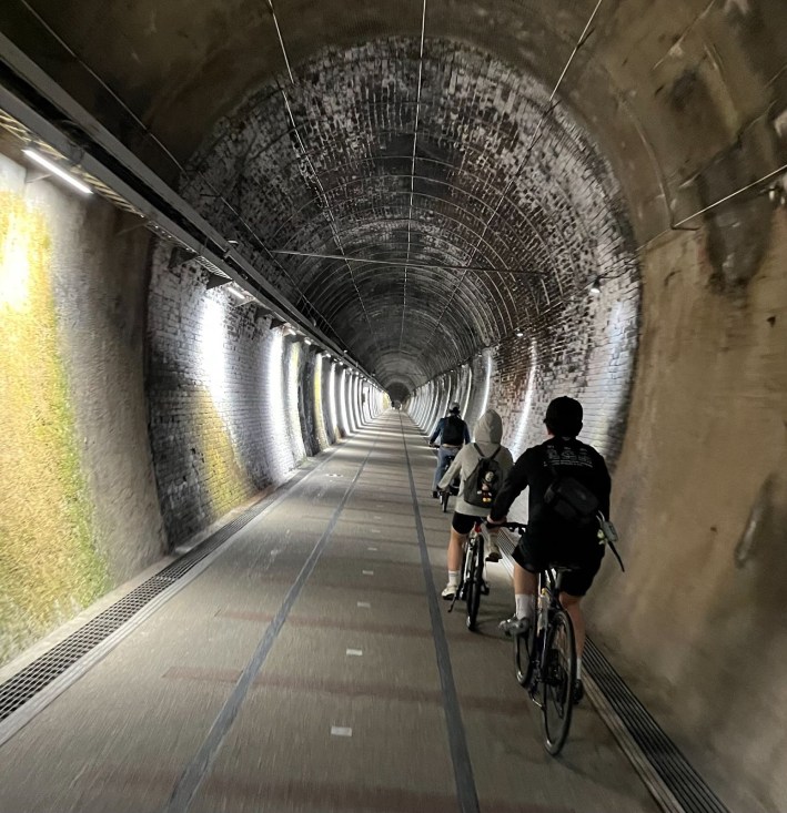 A popular ride for hometown and international tourists is a century-old train tunnel near the eastern coast that was repurposed into a bikeway. The Old Caoling Tunnel is nearly 1.5 miles long, which makes for a unique bike ride before reaching natural light again. Lionel and I brought his nephew and niece along for the fun and dramatic ride.