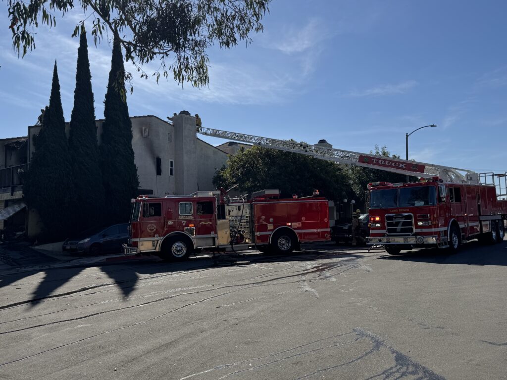 At approximately 9:24 a.m. on Feb. 25, 2026, Long Beach Fire Department crews responded to a two-story apartment building with heavy smoke and flames coming from a second-story unit at the Highland Hacienda complex. Engine 7 initiated fire attack, Truck 7 handled ventilation, and Battalion Chief 3 assumed incident command. Long Beach Police Department was requested for traffic and crowd control.