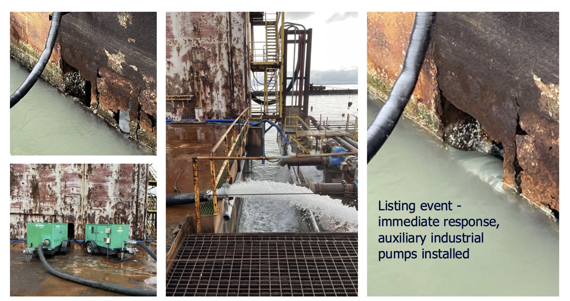 Images of the storm damage and subsequent pumping, via Port of San Francisco