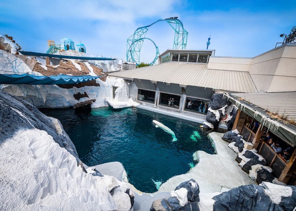 Suit up (metaphorically) and set sail for Arctic thrills. Think icy vibes and animals that make the cold look cool at this research station-inspired attraction. Walk through Wild Arctic to find interactive displays, the chance to see real scientists at work and underwater viewing of creatures like beluga whales, walruses and harbor seals. Arctic Rescue, the West Coast’s fastest straddle coaster, is also located here.