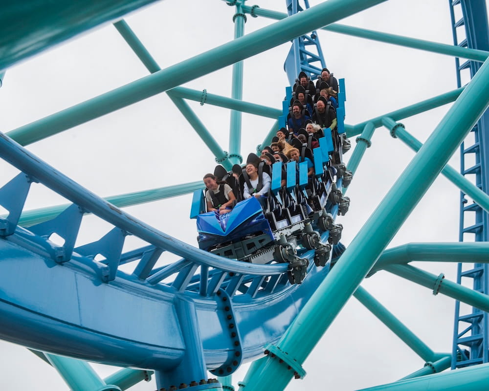 Feel like you’re flying under water as this coaster mimics the elegant glide of the ocean’s winged manta rays. This family-friendly launch coaster combines animal encounters and thrills, with a shaded grotto allowing visitors to touch and feed bat rays before hopping on the ride. A massive reef aquarium also displays upwards of 60 rays and hundreds of fish.