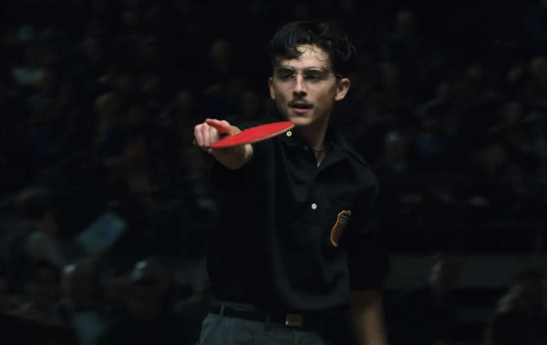 Timothée Chalamet as the character Marty Mauser in Best Picture nominee “Marty Supreme.” Mauser was based off of real-life table tennis player Marty Reisman, who Carmichael resident, Sac State professor and table tennis consultant for the film Scott Gordon personally knew. (Photo courtesy of A24)