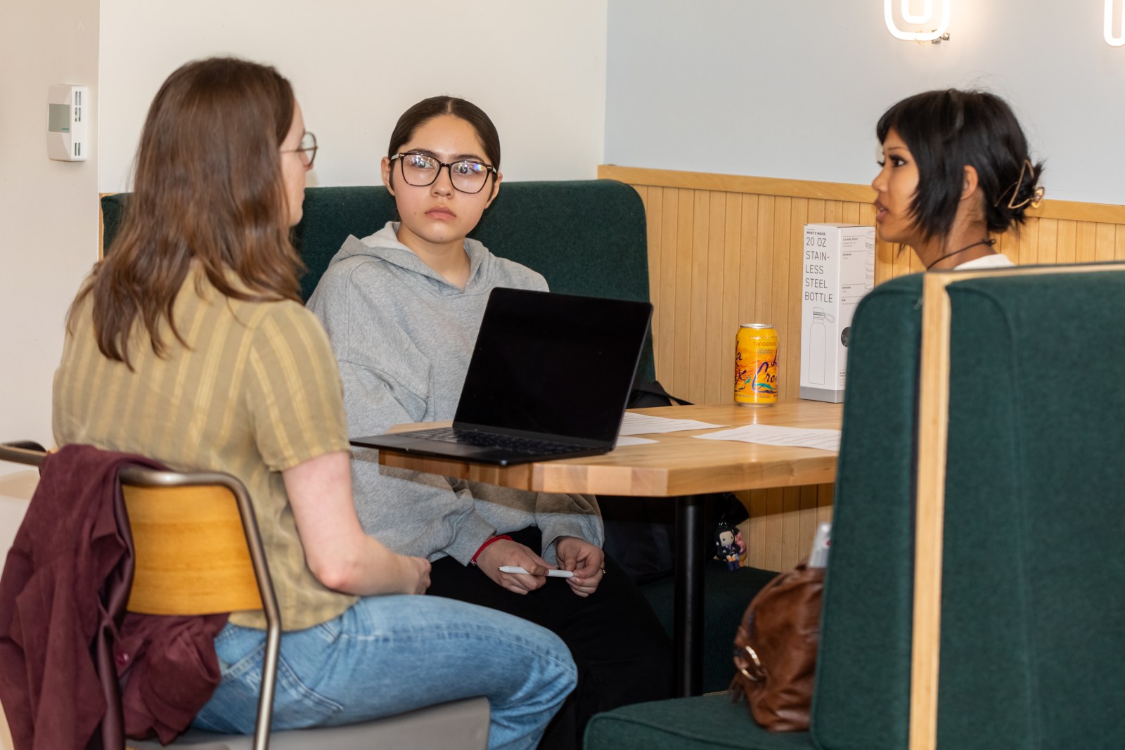 Oaklandside editor Esther Kaplan addresses student reporters during a fellowship training in January at the newsroom’s downtown headquarters. Credit: Kelly Sullivan for The Oaklandside