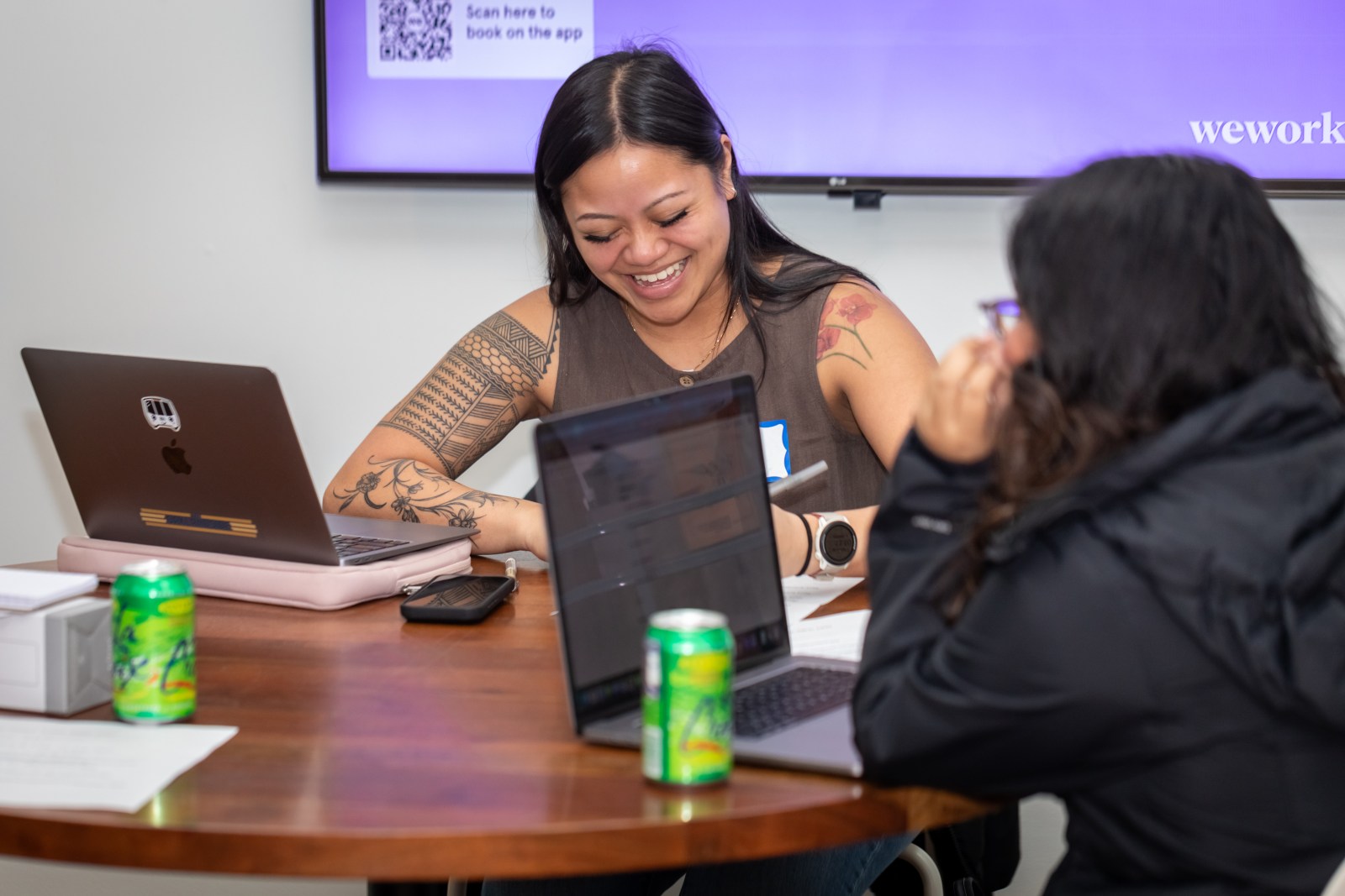 Oaklandside journalists have been working with fellowship participants in small teams since January, sharpening their story ideas and giving them research and reporting assignments. (Clockwise from top left): Reporter Natalie Orenstein with fellows Camacho and Magar, reporter Roselyn Romero with fellow Martin Chales, reporter Azucena Rasilla with fellows Kennedy and Melgoza, and reporter Ashley McBride with fellow Psomas. Credit: Kelly Sullivan for The Oaklandside