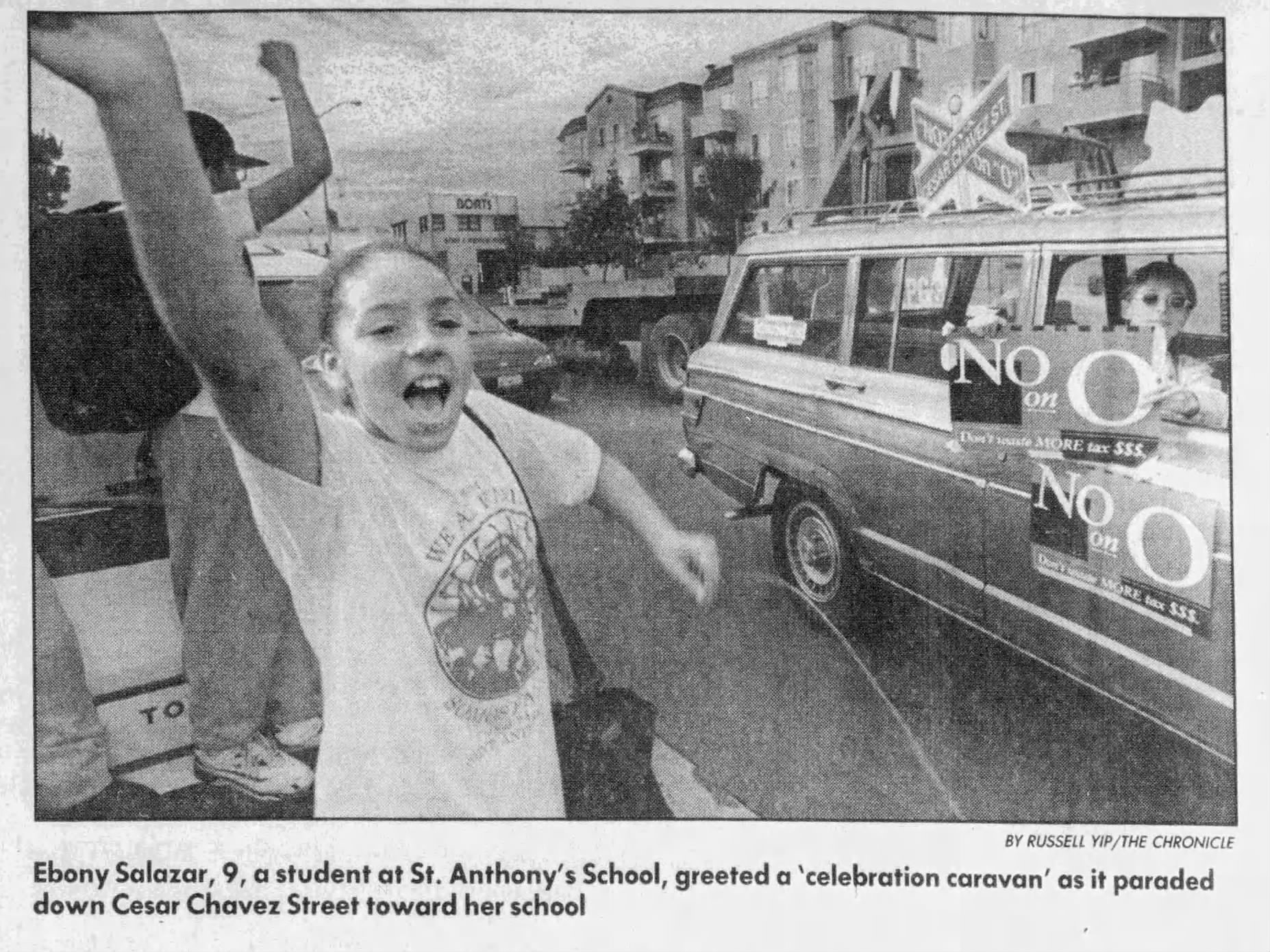 Opponents of the ballot measure to restore Cesar Chavez Street to Army Street celebrate with a caravan after it failed in 1995, as reported by the San Francisco Chronicle on Nov. 9, 1995. (The San Francisco Chronicle via Newspapers.com)