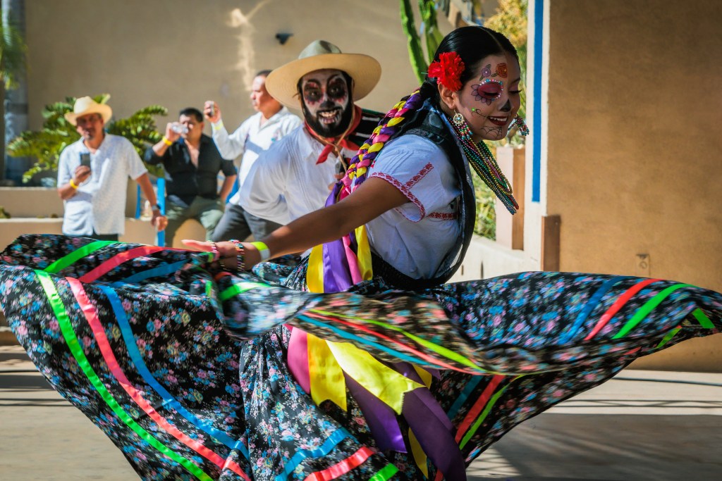 Dancers from Ballet Folklorico Nueva Antequera perform a folk dance at the Museum of Latin American Art during the Dia de los Muertos celebration on Oct. 29, 2023. (Richard H. Grant | Signal Tribune)