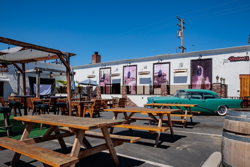 The outside patio area of Roxanne’s Lounge in the California Heights neighborhood of Long Beach on June 21, 2022. (Richard H. Grant | SIgnal Tribune)