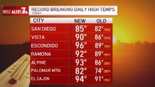 Compared to other March 18 temperatures the NWS keeps on record, several areas around San Diego County broke their records for heat on Wednesday. See those below: