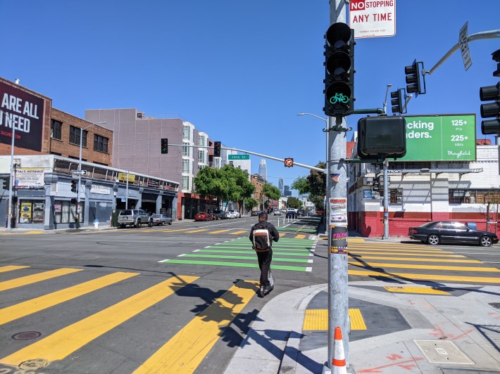 One of the new bike signals on Folsom. Photo: Streetsblog/Rudick