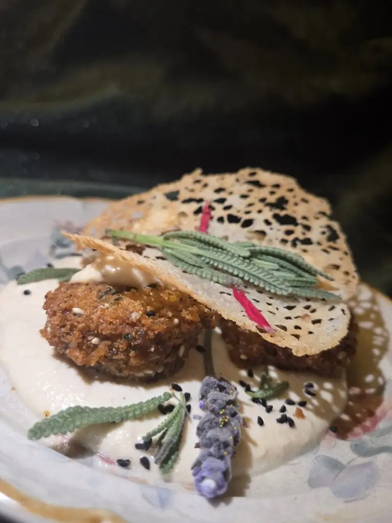 In some ways, that’s literal: For the sourdough bites in the first course, called The Pyramid, she claims the starter is 700 years old. (Considering sourdough originated in ancient Egypt around 1,500 B.C.E., I’m inclined to believe her.)