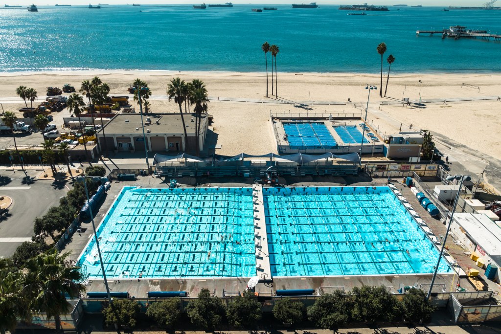 Residents swim laps inside the Belmont Plaza Pool in Long Beach on Oct. 25, 2022. (Richard H. Grant | Signal Tribune)