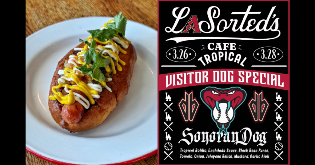Local culinary favorites La Sorteds and Cafe Tropical have teamed up to relaunch the “Visitor Dog Series” just in time for the Los Angeles Dodgers’ season opener against the Arizona Diamondbacks.