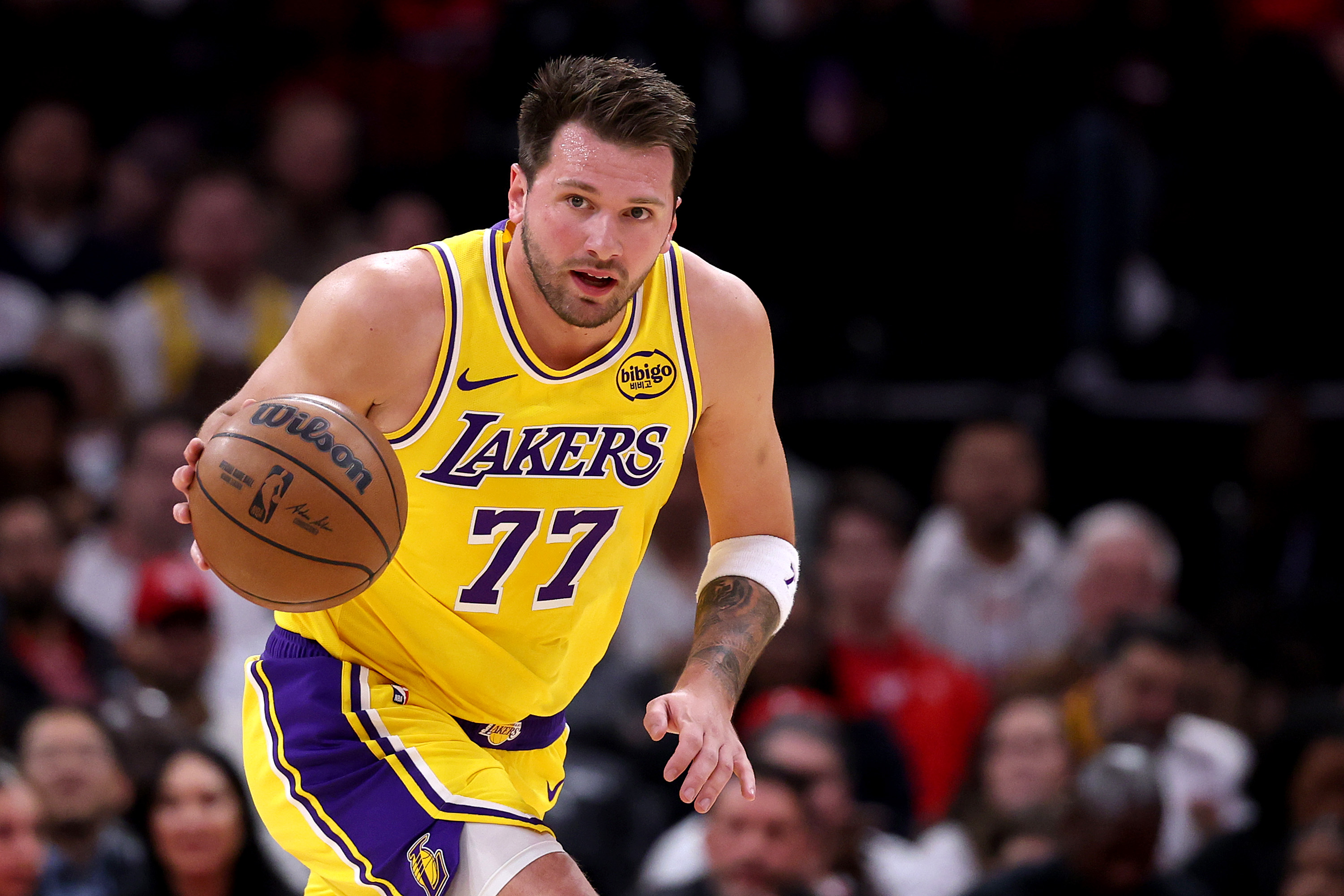GettyHOUSTON, TEXAS – MARCH 16: Luka Doncic #77 of the Los Angeles Lakers in action during the first quarter of the game against the Houston Rockets at Toyota Center on March 16, 2026 in Houston, Texas. (Photo by Kenneth Richmond/Getty Images)