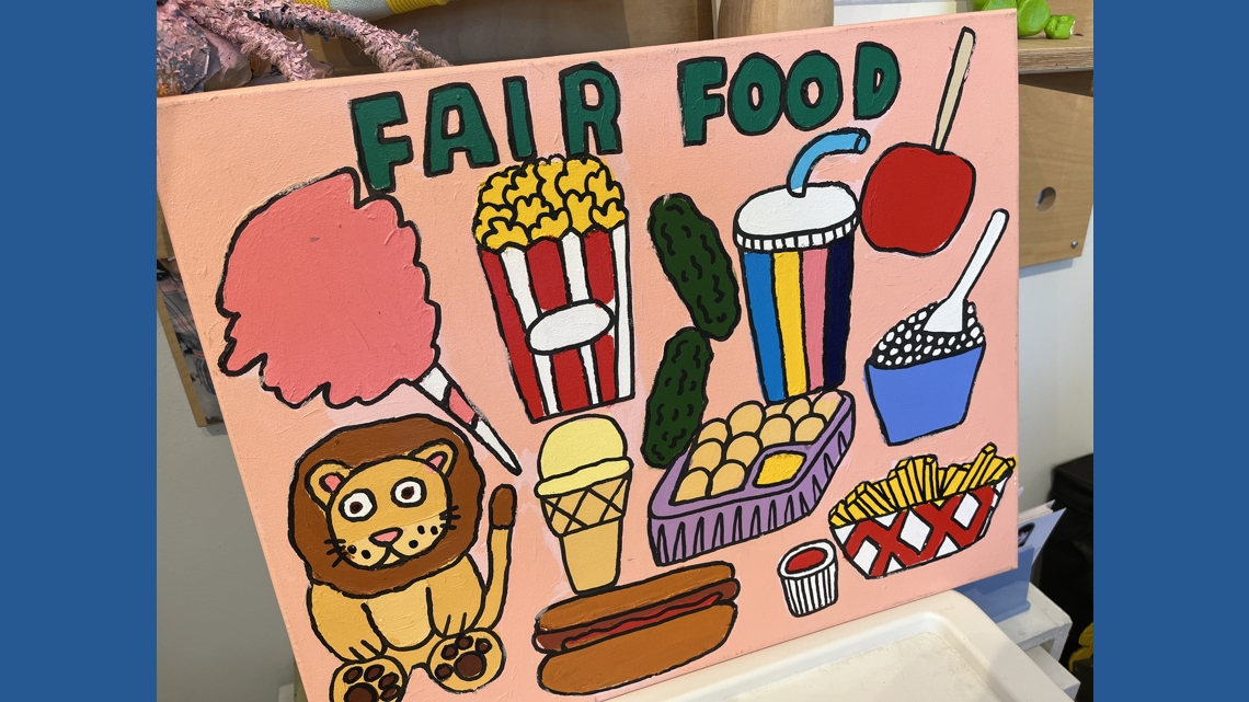 When Hellman arrived at Revision as her first stop, she was captivated by a painting of fair food created by artist Katie Flores.