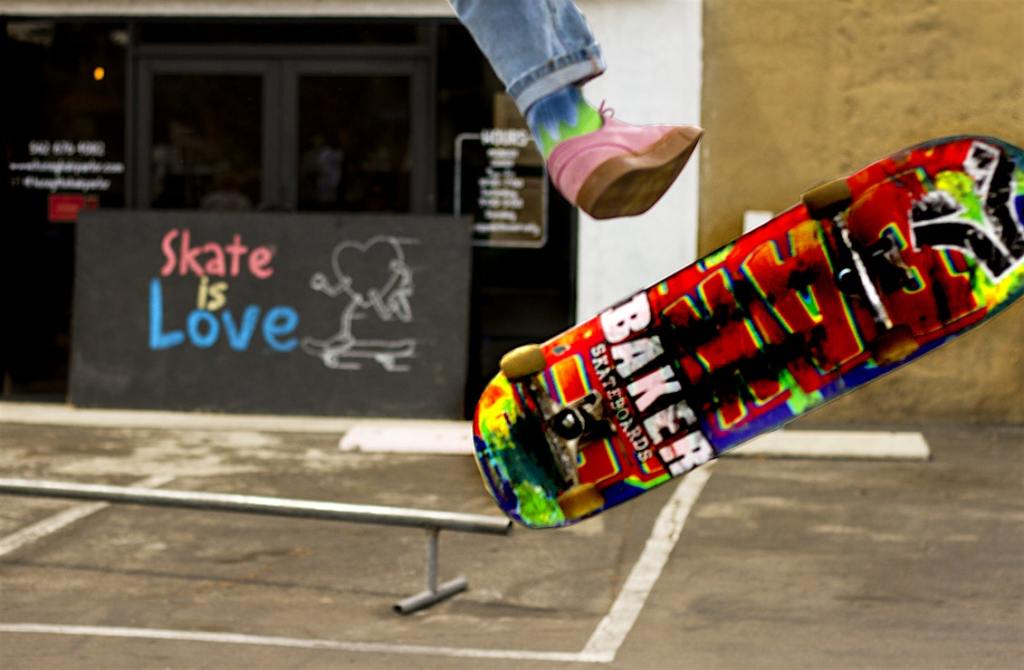 A skater flips their board to complete a trick. (Courtesy of Roxanne’s Eventbrite)
