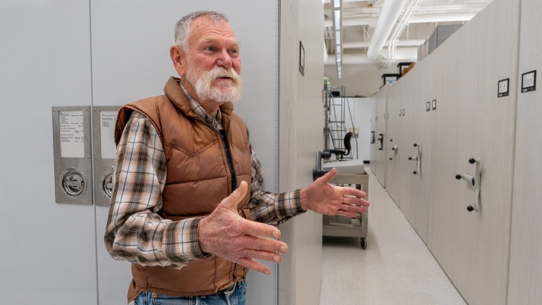 Philip Unitt in the Natural History Museum’s bird archive. (Photo by Thomas Murphy/Times of San Diego)