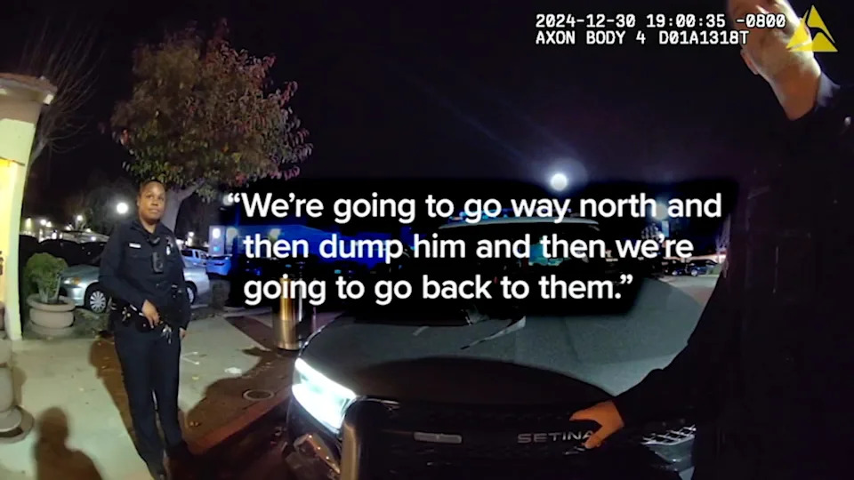 San Leandro police handcuffed this homeless man at a strip mall, got into a violent struggle, and then “dumped him” – in their words – seven miles away in Oakland. Officers did that, even though they concluded the man had committed no crime. An internal affairs sergeant has filed a nine-page complaint with the city on this and other issues. ABC7 Eyewitness News I-Team reporter Dan Noyes obtained that body camera video; the arresting officer left it rolling the entire time, so we can follow along as she decides to dump the homeless man in Oakland.
