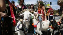 Festively attired goats are seen at previous Blessing of the Animals.
