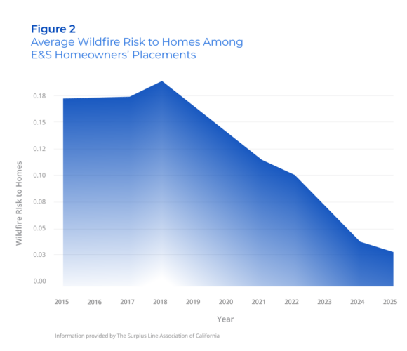Wildfire Risk Still Falling, Even as E&S Homeowners Count Climbs
