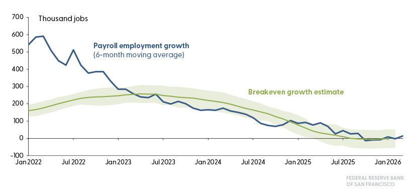 Figure 2. Nonfarm payroll employment growth and breakeven growth estimate