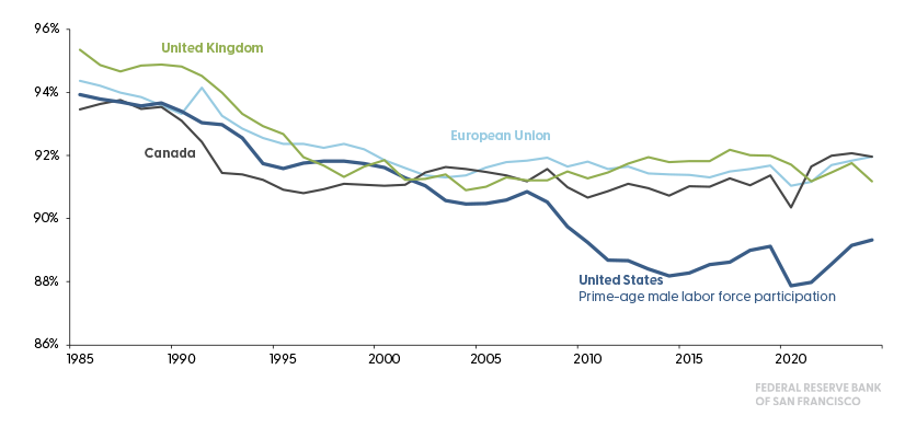 Bengali, Leila, Mary C. Daly, Evgeniya A. Duzhak, and Cindy Zhao. 2025. “Pulled Out or Pushed Out? Declining Male Labor Force Participation.” Federal Reserve Bank of San Francisco Working Paper 2025-07.