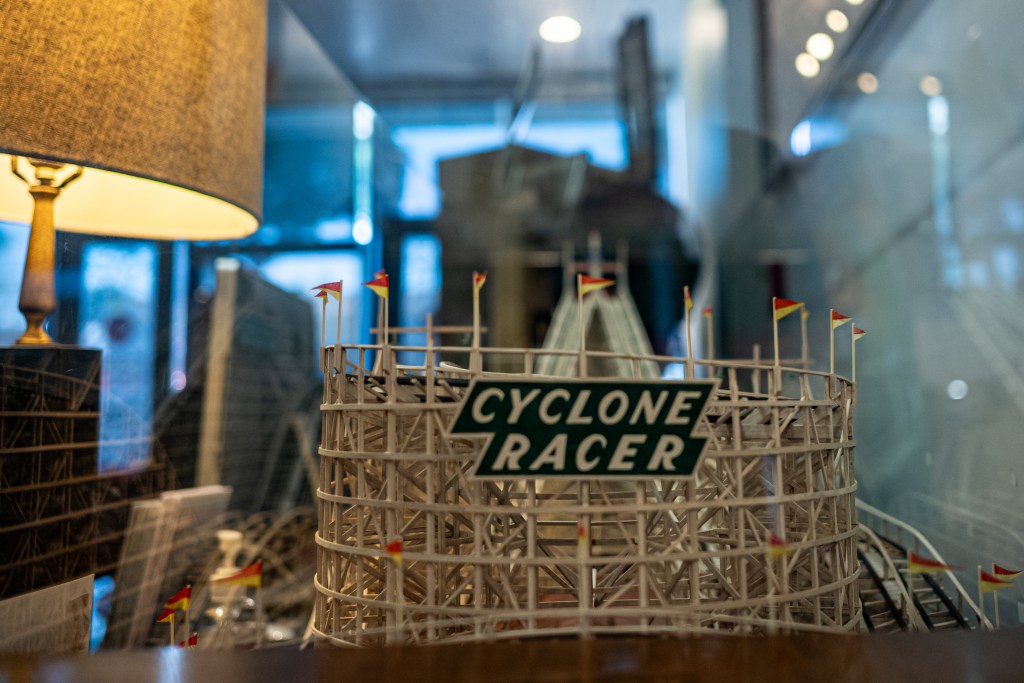 A model of the Cyclone Racer is displayed at the Historical Society of Long Beach on March 20, 2026. (Justin Enriquez | Signal Tribune)