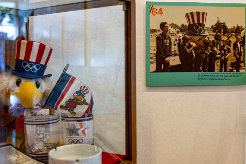 There’s also a feature on local volunteers such as Long Beach pharmacist Vic Hwang, portrayer of Sam the Olympic Eagle, the ‘84 Games mascot. Eagle-eyed observers may even notice recognitions of Long Beach Olympians like water polo player and 2024 bronze medalist Max Irving or swimmer Susie Atwood, winner of a bronze and silver medal at the 1972 Summer Olympics in Munich, Germany.