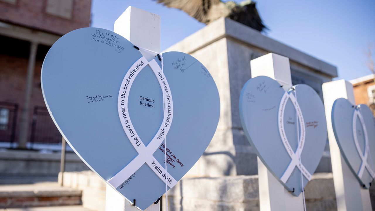 A memorial is seen at the Victory Highway Eagle in Downtown Truckee ahead of a vigil for the nine Castle Peak avalanche victims in Truckee, Calif., Sunday, Feb. 22, 2026. (Stephen Lam/San Francisco Chronicle via AP)