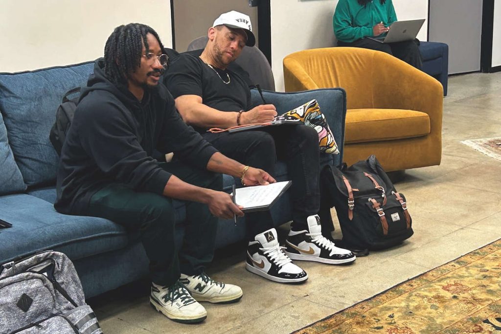 ENTREPRENEUR FINALIST Oakland native Jazz Hudson works with an event facilitator in a mentorship session for her pitch on ‘Herbal Oracle,’ an AI-powered wellness platform rooted in ancestral plant knowledge. (Photo by Bosko Kante & Ryan Austin)