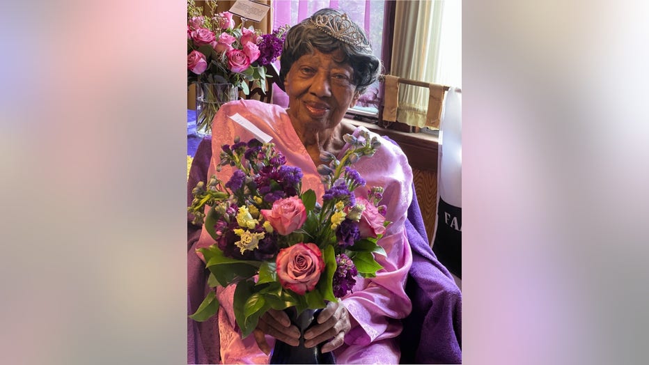 Getting her flowers: Oakland resident Marcella Eichelberger Hubbard turned 105 on March 28, 2025. (LaTasha Mitchum )