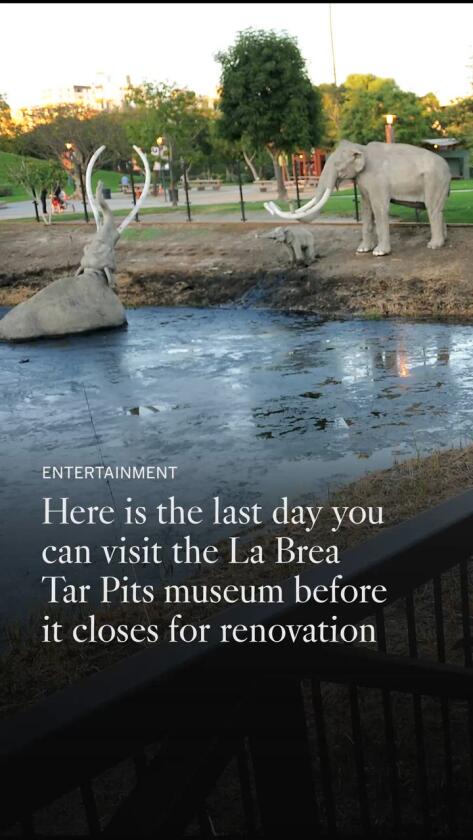 The last day to visit the Page Museum is July 6. Prior to closing, the Tar Pits will host a free public KCRW Summer Nights event June 12 and a members-only, disco-themed dance party June 27.