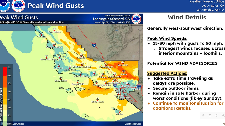 Wind gusts could reach 50 mph in the interior mountains and foothills, potentially prompting wind advisories, the NWS predicts.