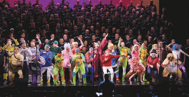 Vintage cartoons, such as Teenage Mutant Ninja Turtles and Inspector Gadget, added to the 80s vibe, as did shared memories from chorus members who are Millennials or who otherwise remember that era of MTV pop culture, big hair, the emergence of home computing, and much more.