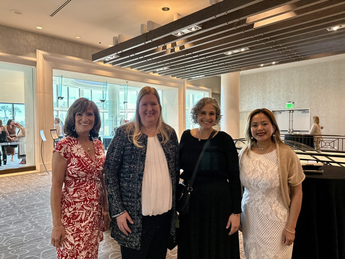 From left to right: Rita Goshert, director of the Cherese Mari Laulhere Child Life Program; Cynthia Herrington, M.D., cardiothoracic surgeon with the Children’s Heart Institute; Lara Khouri, chief executive officer; and Kaye Remo, program director of the Children’s Heart Institute at Miller Children’s & Women’s Hospital, gather in support of children and families at the Auxiliary’s 69th Annual Designer Fashion Show.
