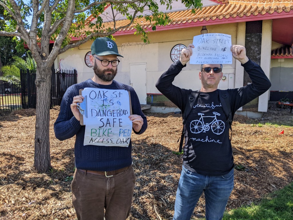Bryan Culbertson and Dani Lanis came to protest the closure of the Oak Street bike lane. Photo: Streetsblog/Rudick
