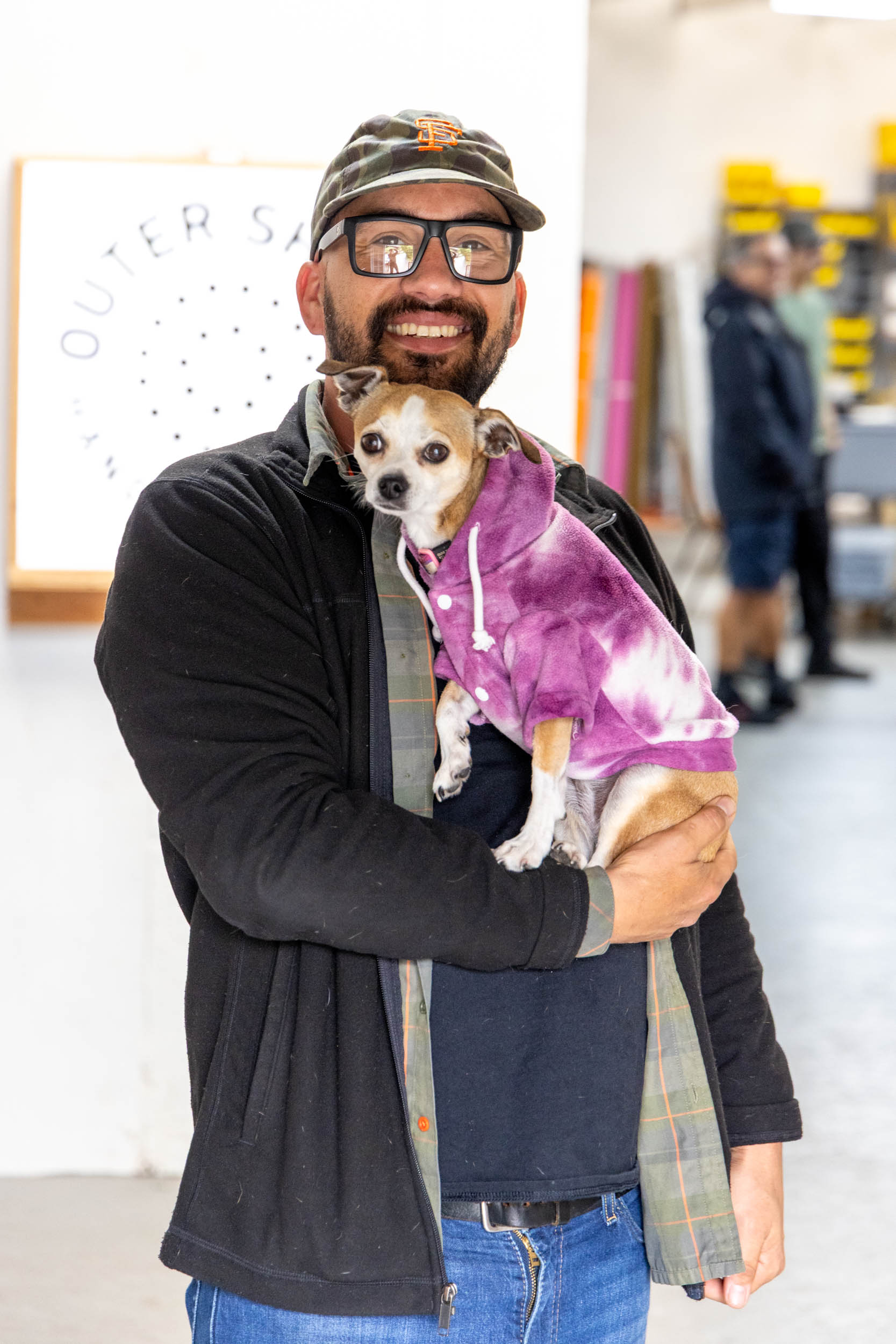 The last time I visited Outer Shell was two years ago, and at the time, they were open about needing more space. There wasn’t much room to move around between the various sewing machines and inventory racks, but they made it work. Not long after my visit, they moved into a larger space inside their building. The unit was previously home to Subterranean Records, an independent label that released bands like the Dead Kennedys and Flipper. Subterranean retired, and Outer Shell finally got to spread their legs out.