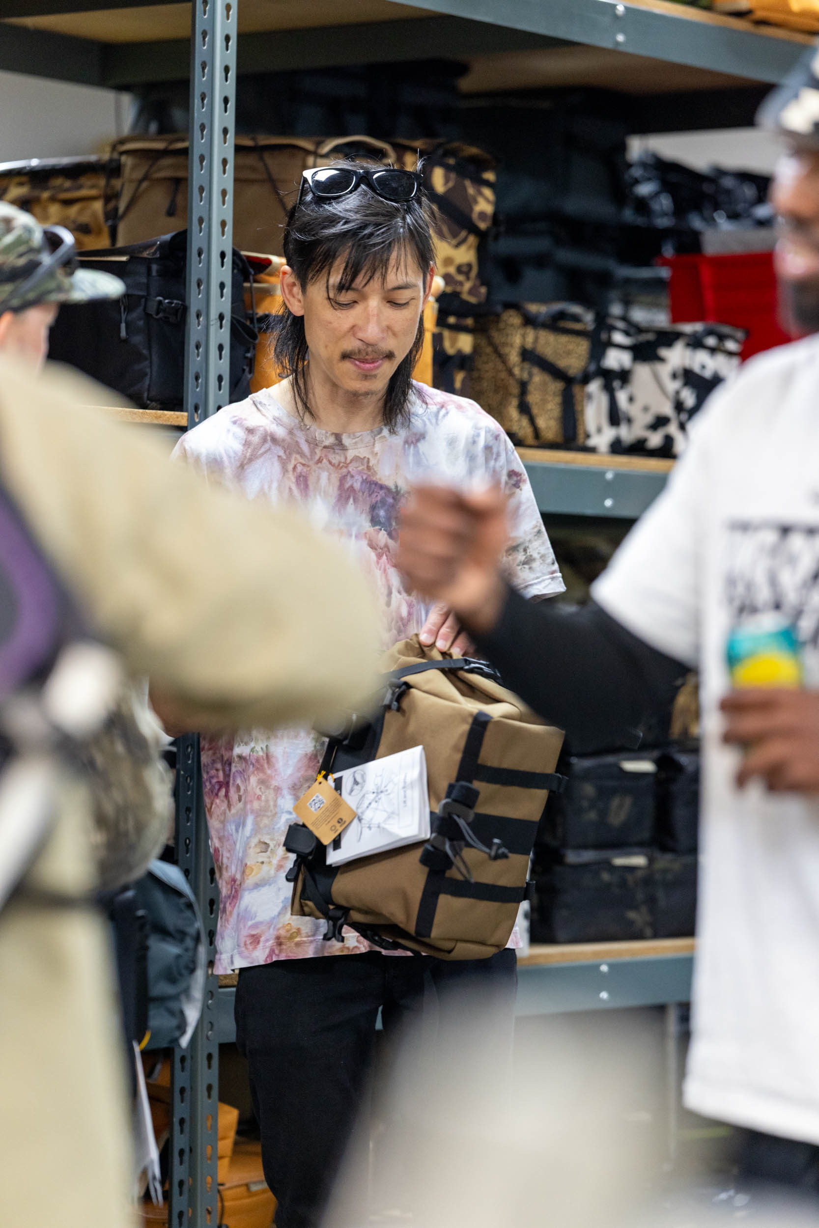 Co-owner Jim Santos showed me a walkthrough video of the space before Subterranean moved out, when it was packed to the brim with records and boxes. After some serious sweat equity, the current space is bright and open, with plenty of room to move around between all the machines. It’s essentially a large rectangular space with designated areas for cutting fabric, sewing and bartacking, shipping, and administrative duties. Jim said he’s feeling really good about Outer Shell’s current state, and that the business is healthy and thriving. They’ve been moving inventory, developing new products, and they are in a good position with plenty of stock heading into spring.