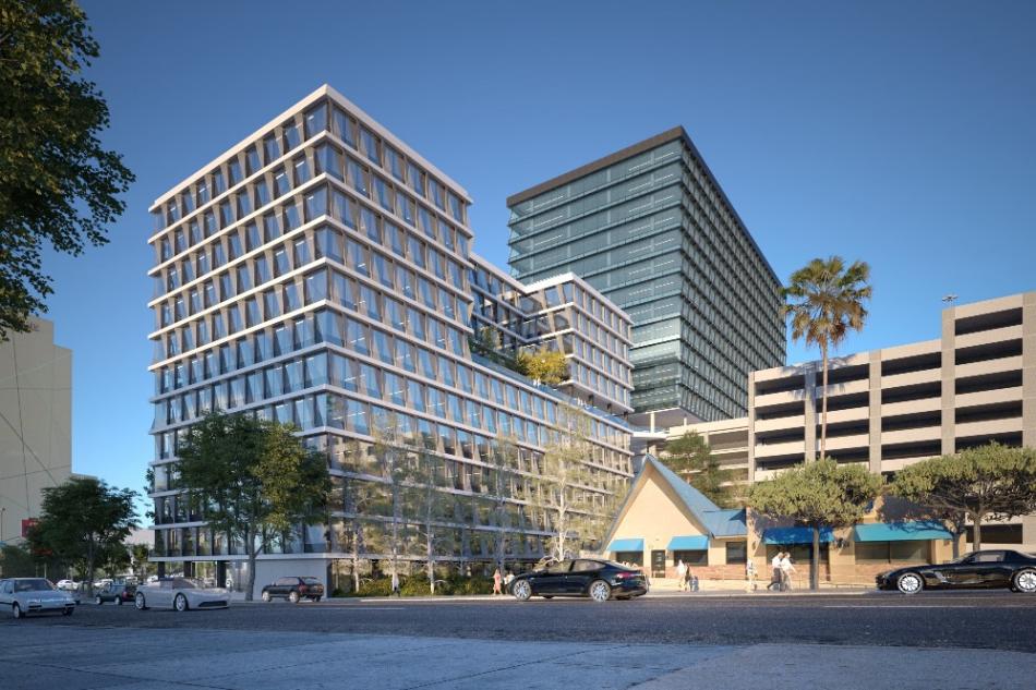 The 12-story tower, built more than 60 years ago at 550 S. Vermont Avenue, originally consisted of approximately 155,000 square feet of offices. The ongoing project, in addition to remodeling the look of the existing building, is adding an additional 88,000 square feet of space at the rear of the building, expanding its total office space to more than 240,000 square feet of space. The makeover also involves the construction of 2,000 square feet of commercial space at street level.