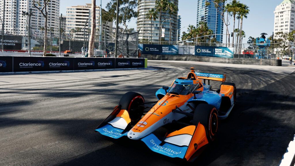 Pato O’Ward was third quick as he looks to break a curse of sorts he has at Long Beach, followed by reigning champion Alex Palou in fourth on the timesheets.
