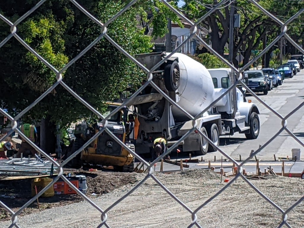 Crews in the connecting neighborhood pouring concrete. Photo: Streetsblog/Rudick